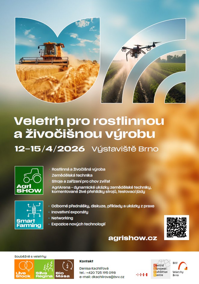 S potěšením oznamujeme, že budeme součástí veletrhu AGRISHOW, který proběhne ve dnech 12.–15. dubna 2026 na Výstavišti Brno. Tento veletrh představuje nový komplexní formát pro rostlinnou a živočišnou výrobu, který nově zahrnuje i lesnictví skrze spoluúčast veletrhu SILVA REGINA. Výraznou novinkou je sekce AGRI ARENA prostor pro živé demonstrace techniky v terénu.